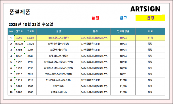 입고일이 변경된 제품에 대해 안내 드립니다.