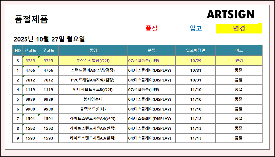 품절 제품의 입고일이 변경되어 안내 드립니다.