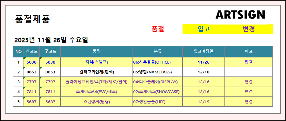 품절 제품 중 입고된 제품과 입고일이 변경된 제품에 대해 안내 드립니다.
