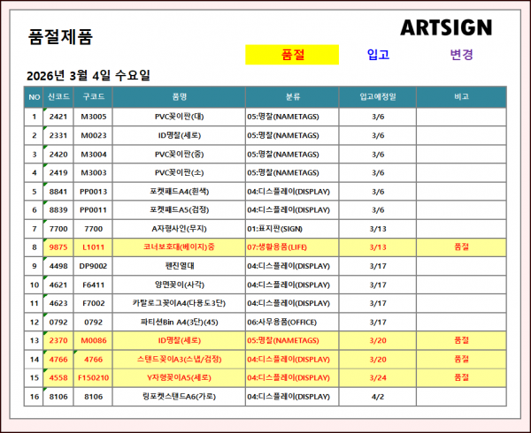 품절 ] 2026년 3월 4일