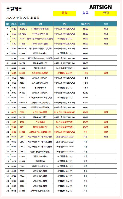 품절제품과 입고일이 변경된 제품에 대해 안내드립니다.