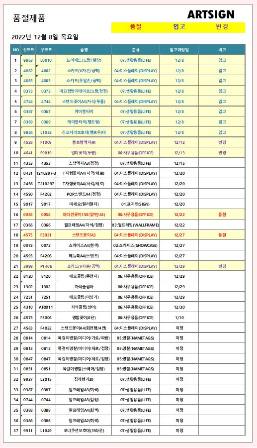 품절 / 입고 / 변경 ] 2022년 12월 8일