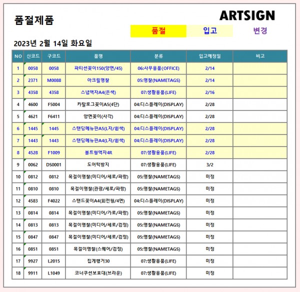 품절입고] 2023년 2월 14일