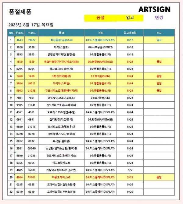 품절제품과 입고된 제품에 대해 안내드립니다.