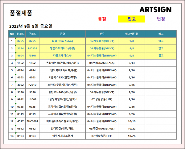 입고 ] 2023년 9월 8일