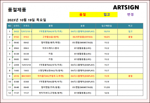 품절 제품과 입고된 제품에 대해 안내드립니다.
