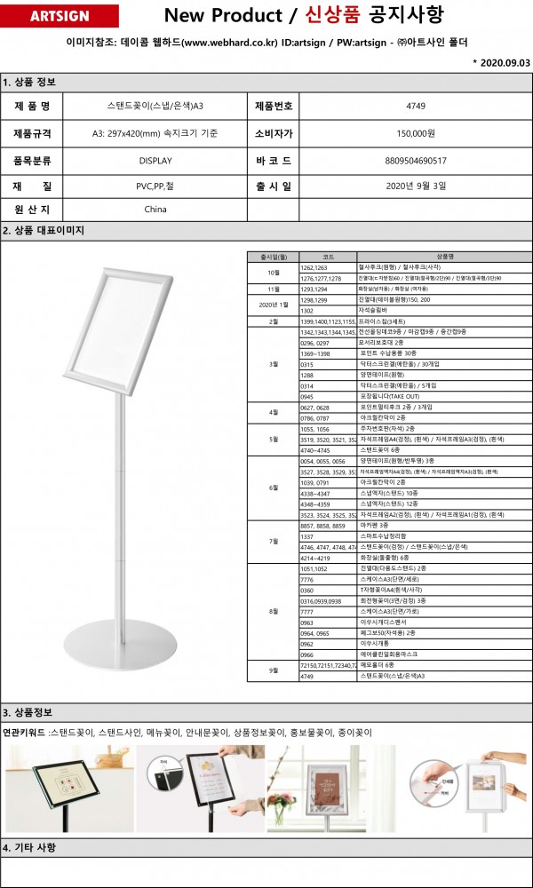 신상품] 스탠드꽂이A3(스냅/은색) 출시