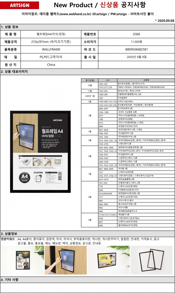 신상품] 월프레임A4(자석/검정) 출시