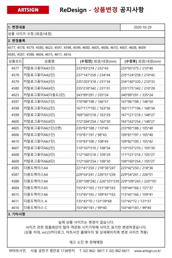 상품변경] 카탈로그꽂이,다용도케이스 상품 크기 변경