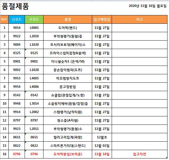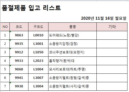 품절제품과 입고된 제품에 대해 안내드립니다.