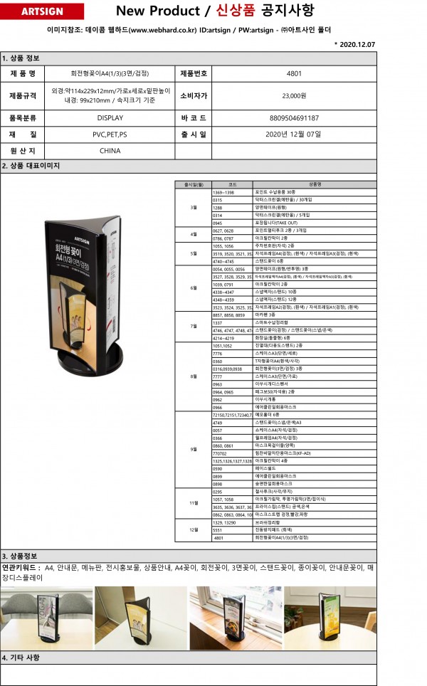 신상품] 회전형꽂이A4(1,3)(3면/검정) 출시