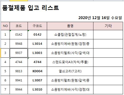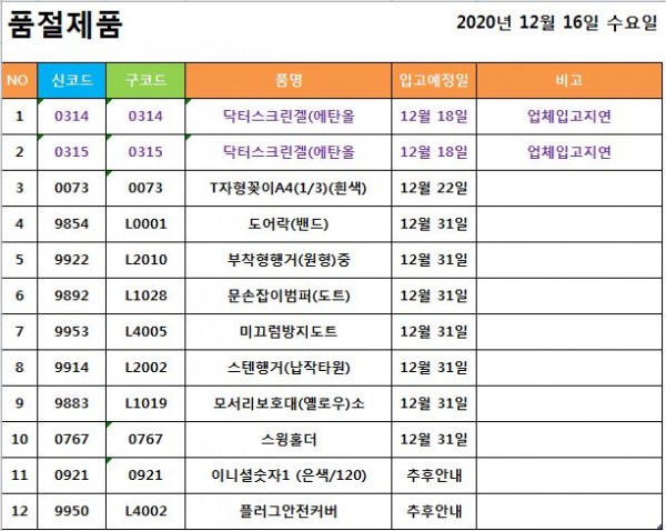 품절입고 / 입고일변경 ] 2020년 12월 16일