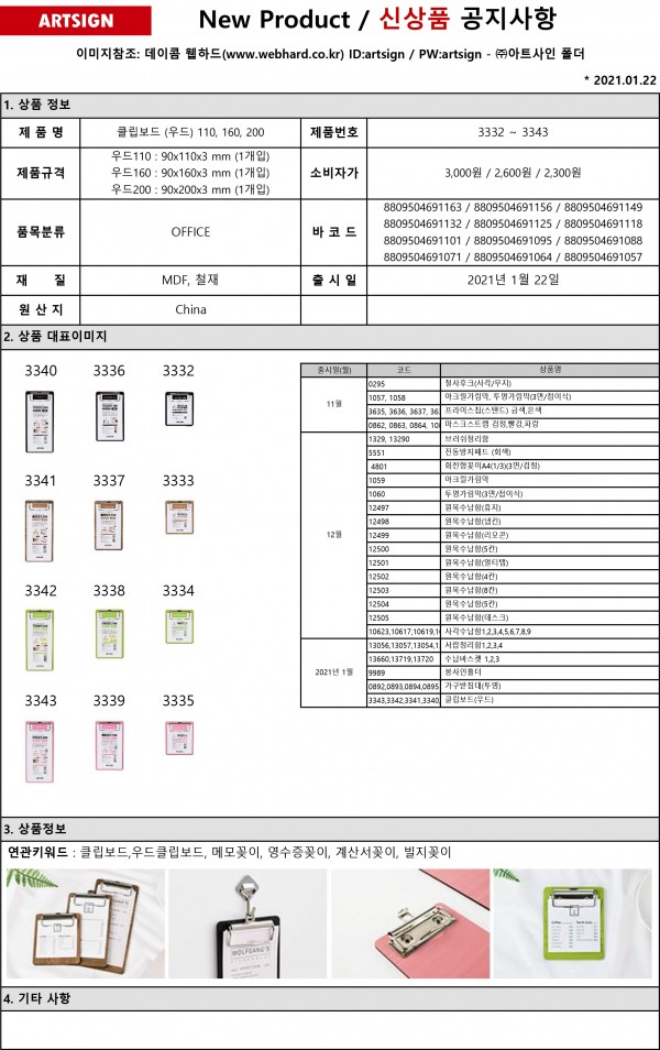 신상품] 클립보드(우드)110, 160, 200 _ 12종 출시