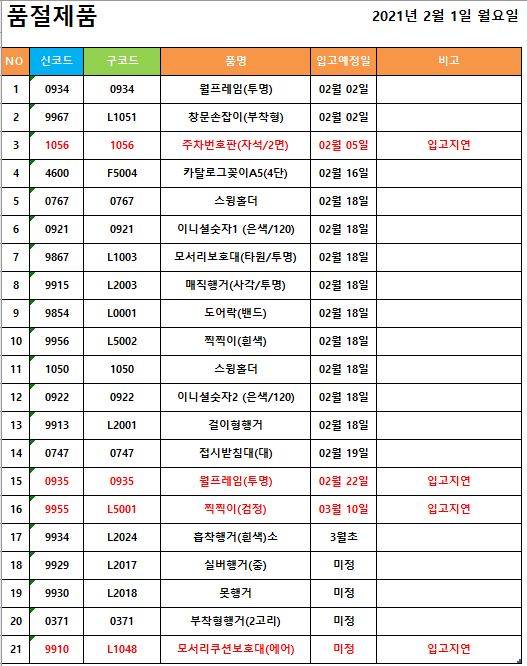 품절 / 품절입고] 2021년 2월 1일