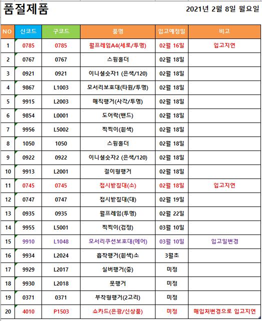 품절제품과 입고된 제품에 대해 안내드립니다.