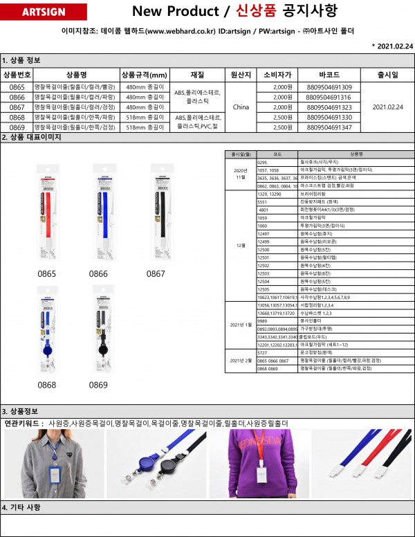 신상품] 명찰목걸이줄(릴홀더) 5종