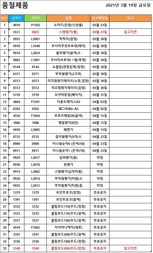 품절제품과 입고된 제품에 대해 안내드립니다.