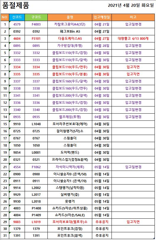 품절제품과 입고일이 변경된 제품에 대해 안내드립니다.