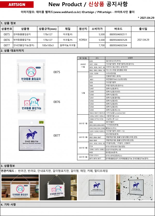 신상품] 반려동물출입금지,반려동물출입가능,안내견출입가능(점자) 출시