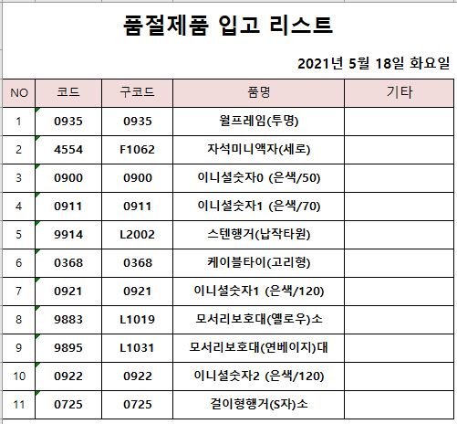 품절입고 ] 2021년 5월18일