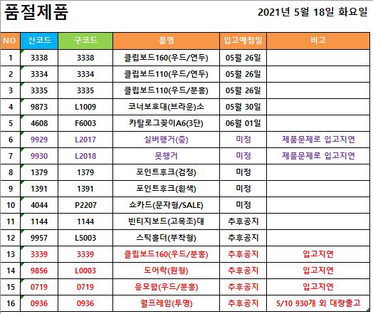 품절제품과 입고일변경된 제품에 대해 안내드립니다.