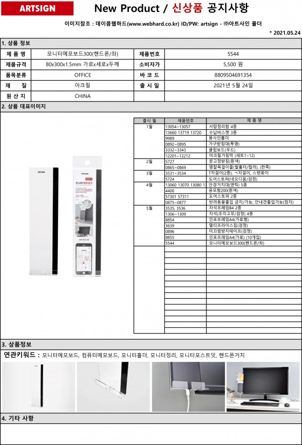 신상품] 모니터메모보드300(핸드폰/좌) 출시
