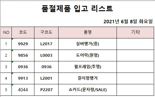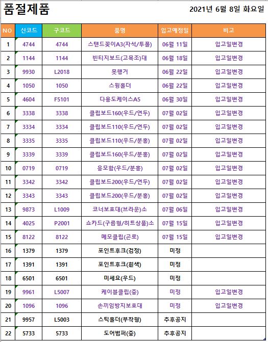 품절입고 / 입고일변경 ] 2021년 6월 8일