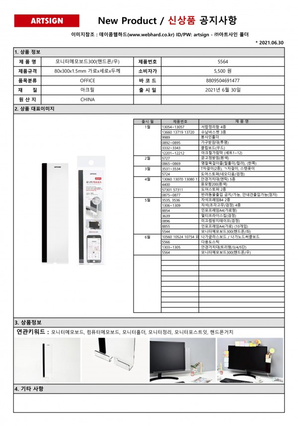 신상품] 모니터메모보드300(핸드폰/우) 출시