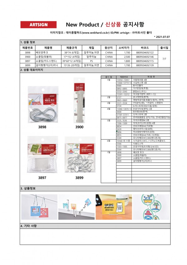 쇼클립(워블러), 카드스탠드, 걸이형행거(S자)미니, 배모양후크 출시되었습니다.