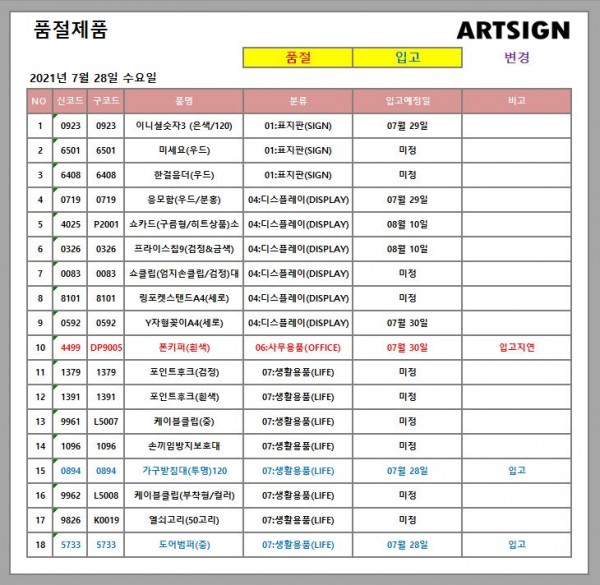 품절제품과 입고된 제품에 대해 안내드립니다.