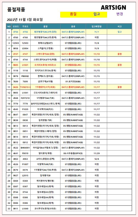 품절제품과 입고된 제품에 대해 안내드립니다.