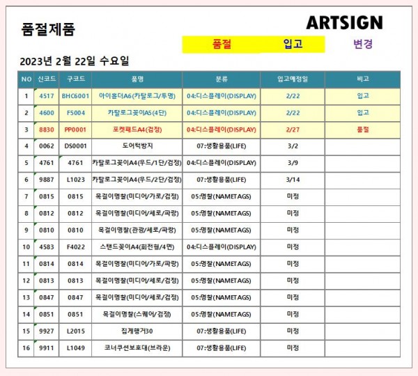 품절제품과 입고된 제품에 대해 안내드립니다.