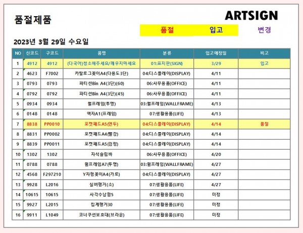 품절제품과 입고된 제품에 대해 안내드립니다.