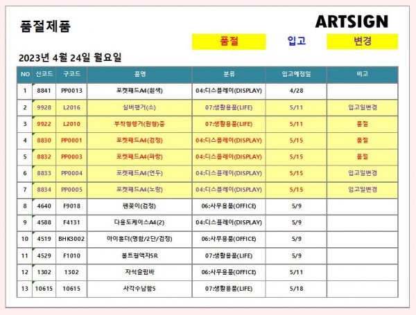 품절 / 변경 ] 2023년 4월 24일
