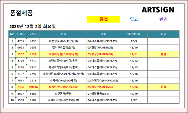 품절 ] 2025년 12월 2일