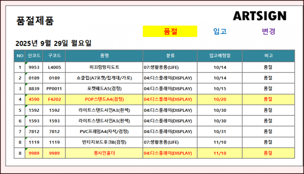 품절 ] 2025년 9월 29일