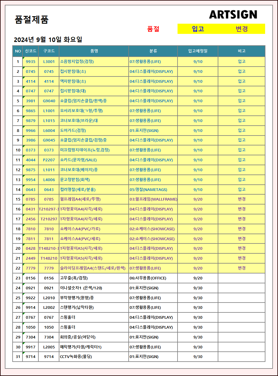 품절 제품 입고 된 제품과 입고일이 변경된 제품에 대해 안내 드립니다.
