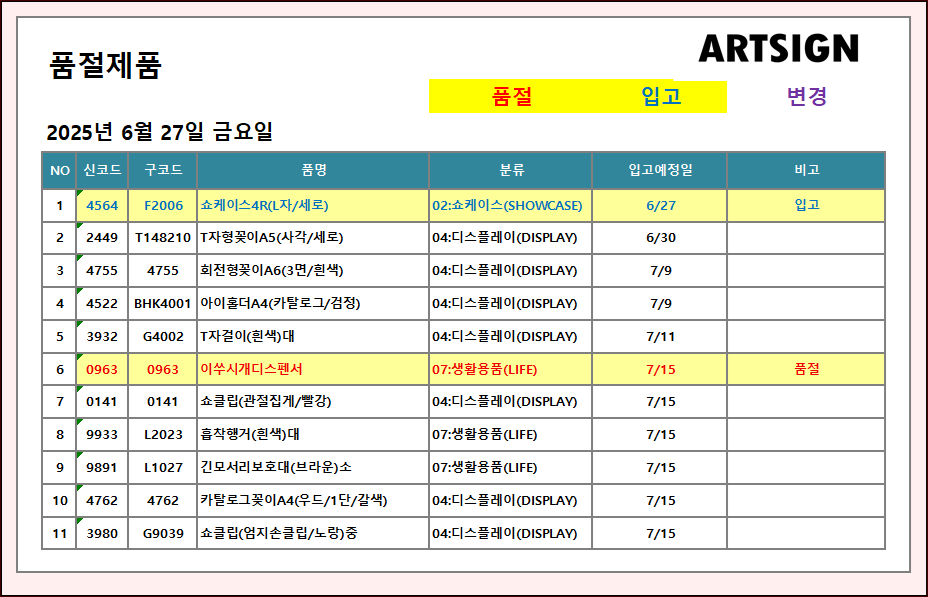 품절 제품과 입고 된 제품에 대해 안내 드립니다.