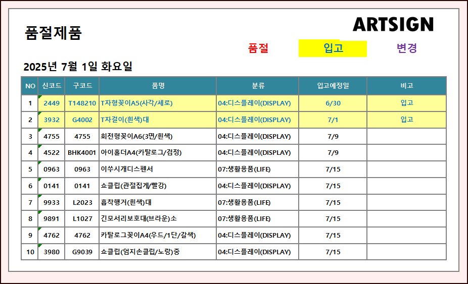 입고 ] 2025년 7월 1일