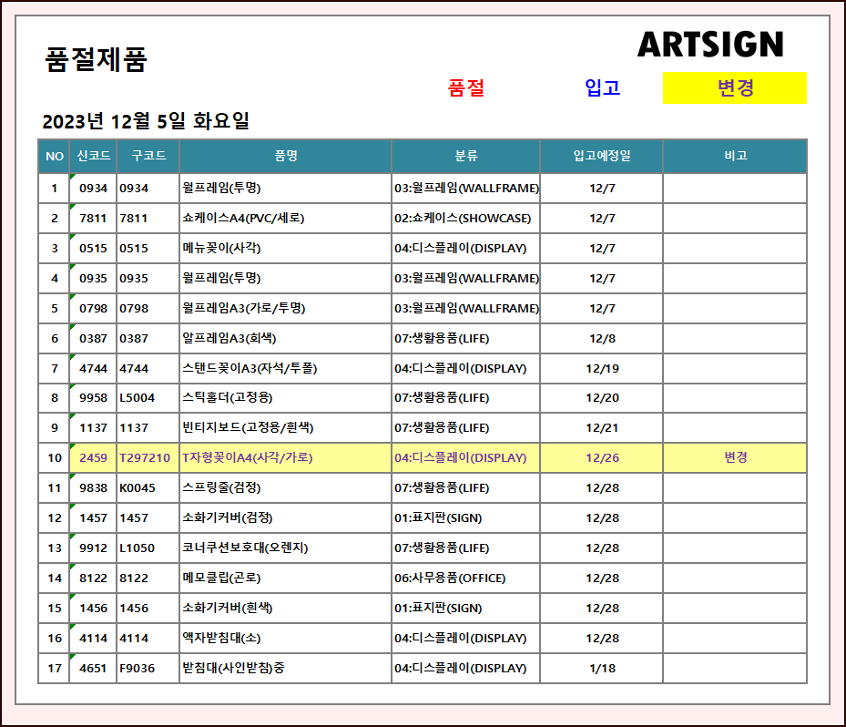 품절 제품 중 입고일이 변경된 제품에 대해 안내 드립니다.