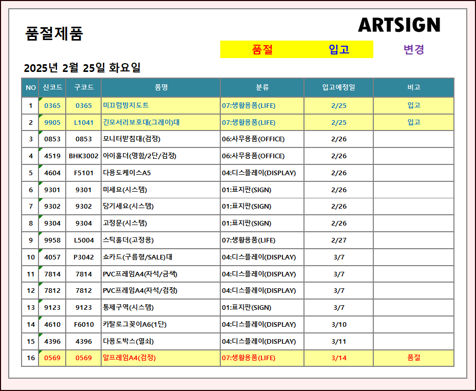 품절 제품과 입고된 제품에 대해 안내 드립니다.