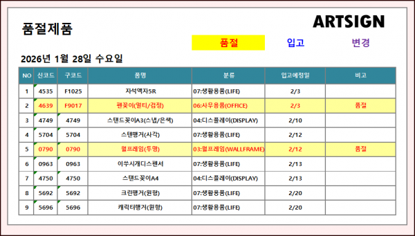 품절 ] 2026년 1월 28일