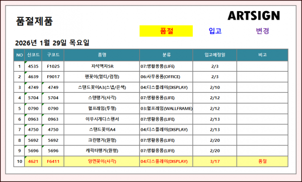 품절 ] 2026년 1월 29일