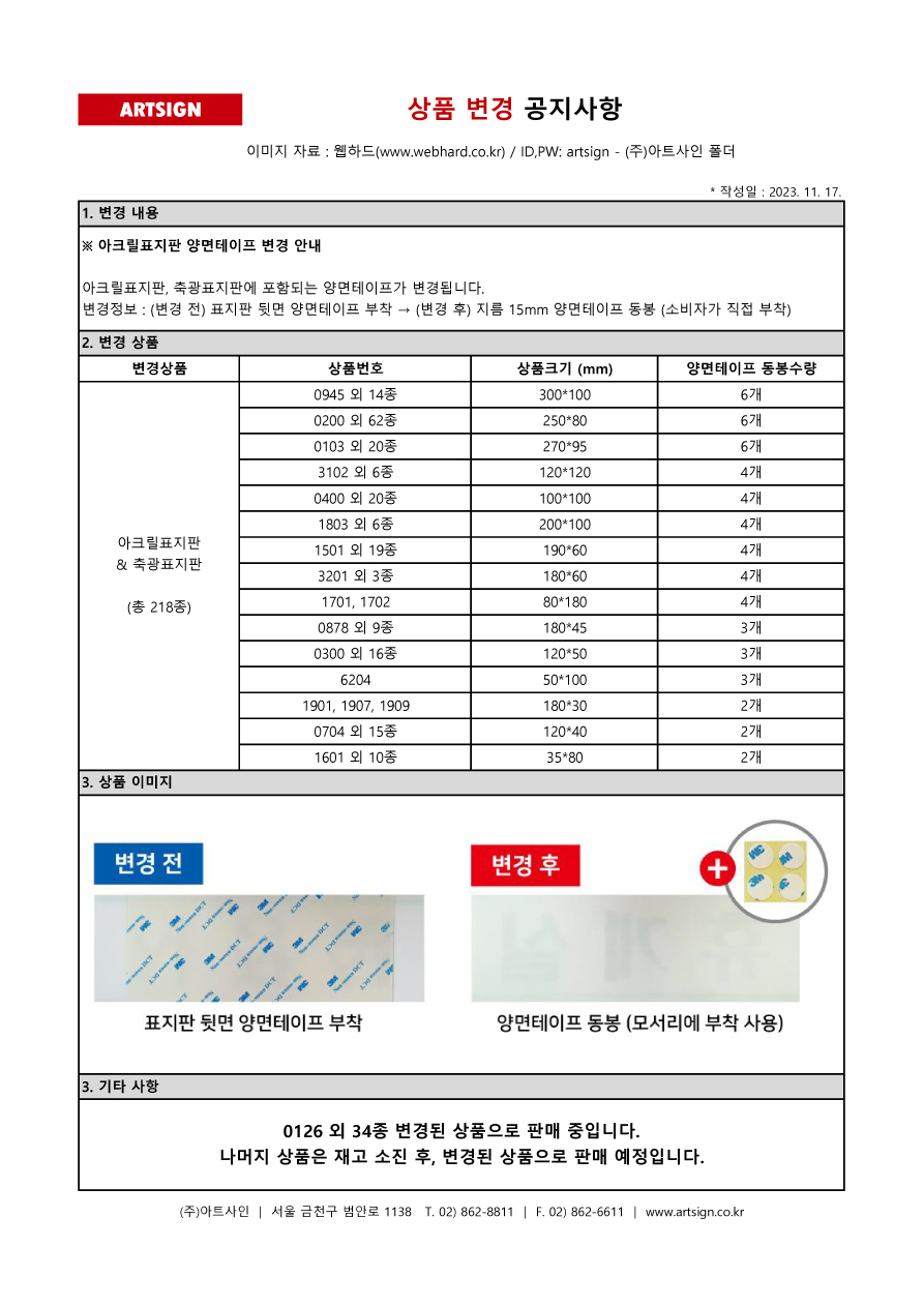 상품변경 ] 아크릴표지판 양면테이프 변경