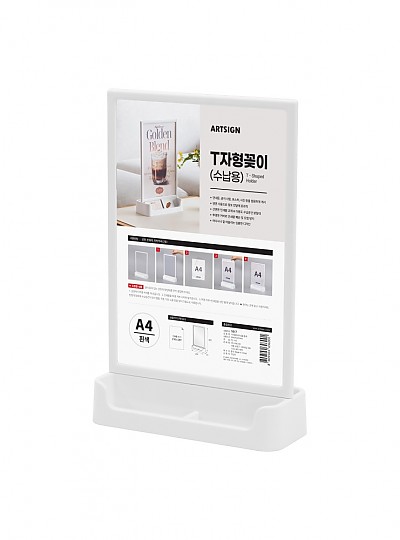 A4, T자형꽂이, 종이꽂이, pop꽂이, pop스탠드, 양면꽂이, 메뉴판, 홍보물, 수료증, 공고문, 테이블안내판