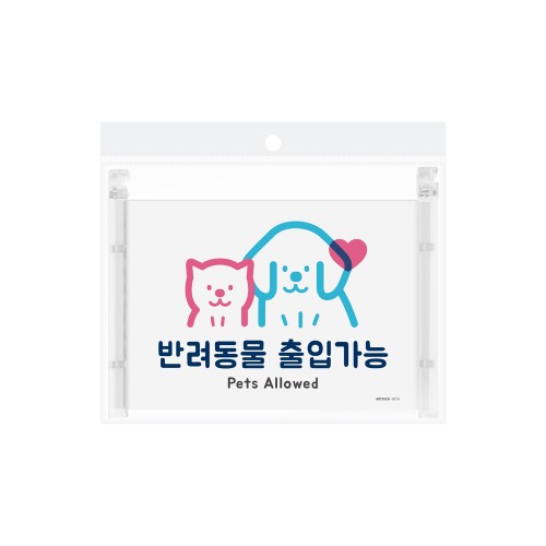 ‘ 반려동물 출입가능 ’ 이라는 문구가 필요한 상점에 사용하는 걸이형 안내 표지판입니다.