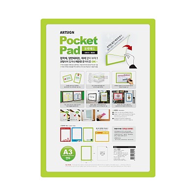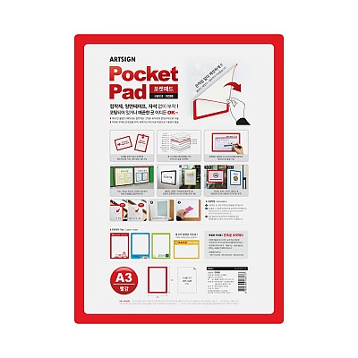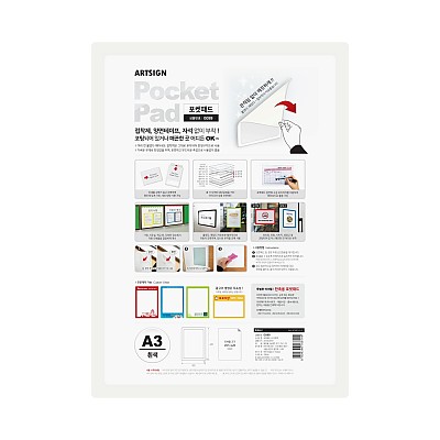포켓패드, A3사이즈, 부착식, 안내판, 안내문, 게시판, 게시판꾸미기, 냉장고메모보드