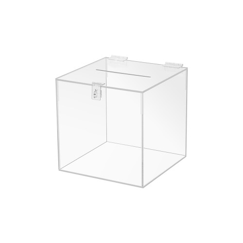 투명 아크릴 케이스 모금함입니다. 경첩이 부착되어 있어 내용물을 쉽게 뺄 수 있습니다.
