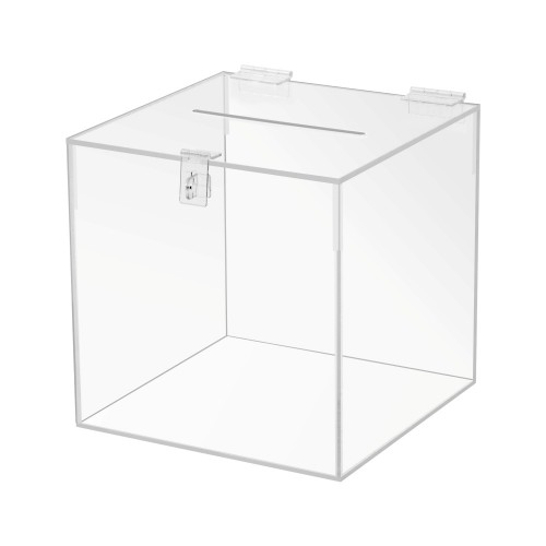 투명 아크릴 케이스 모금함입니다. 경첩이 부착되어 있어 내용물을 쉽게 뺄 수 있습니다.