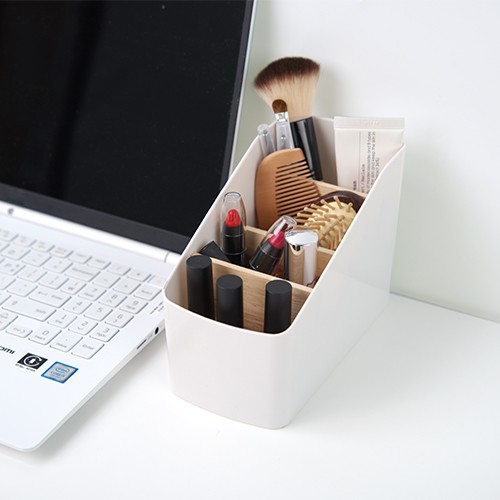 데스크 위에 어지럽혀진 리모컨, 기타 사무용 소품 등을 깔끔하게 정리할 수 있는 다용도 원목수납함입니다.